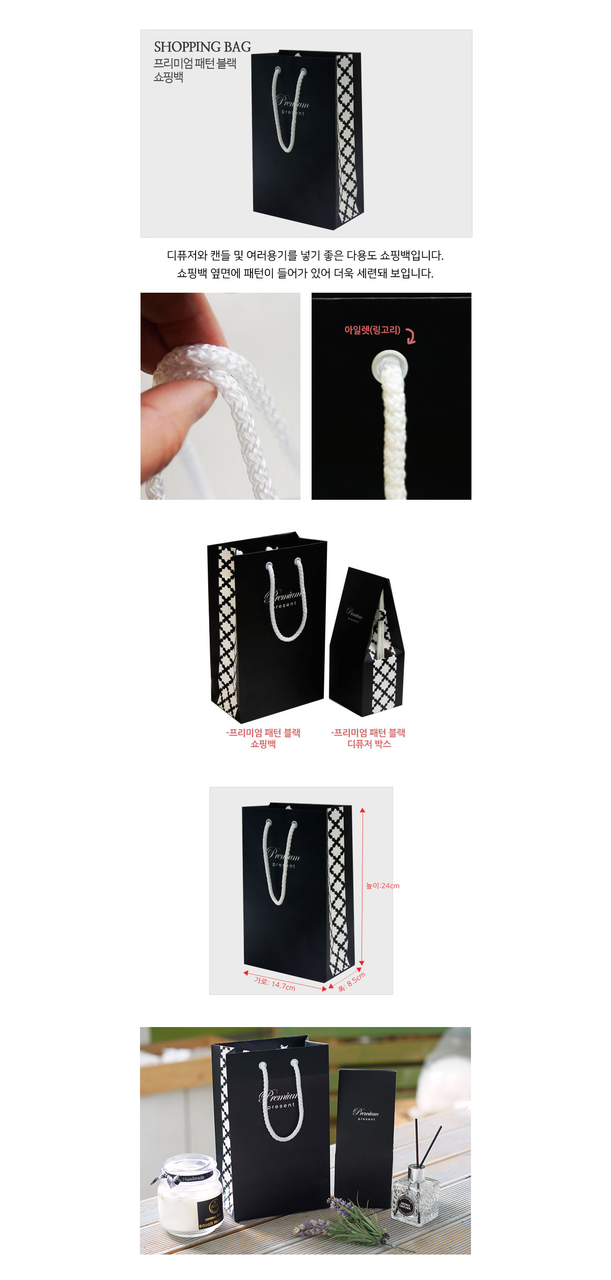 프리미엄 패턴 블랙 쇼핑백