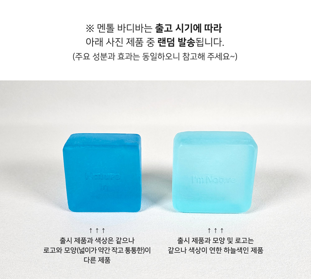 ※ 멘톨 바디바는 출고 시기에 따라 색상과 비누 로고가 좀 다를 수 있으니 참고 부탁드립니다.