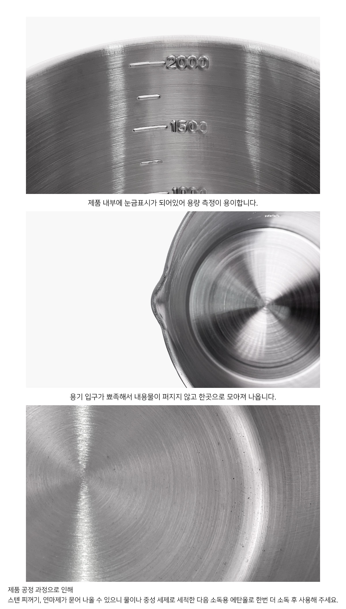 - 제품 특성상 스테인리스 찌꺼기가 묻어있을 수 있습니다. 사용하시기 전 물이나 중성 세제로 깨끗이 씻은 후 소독용 에탄올로 소독 후 사용해 주세요.