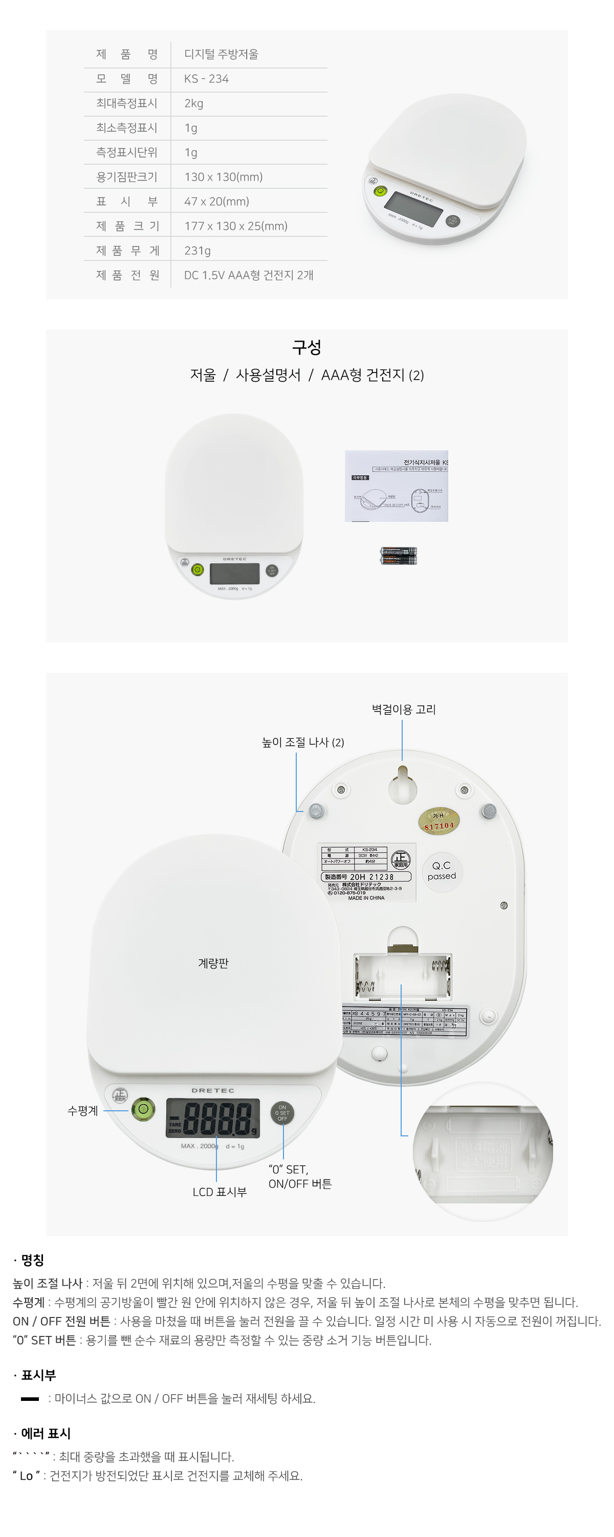 HOME > 용기/포장/도구 > 만들기도구 > 저울 > 드레텍 전자저울 - 2kg (1g단위)