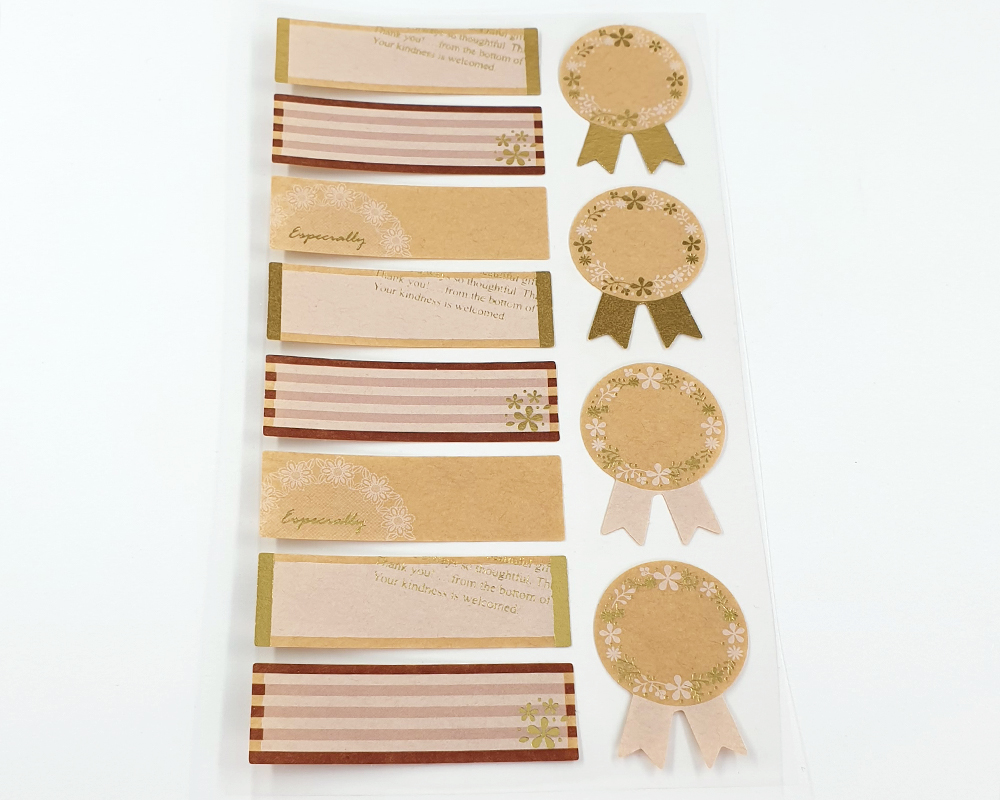 - 크라프트 스티커로 직접 손글씨로 적어 사용하는 라벨입니다. - 제작 날짜나 메세지, 내용물 등을 직접 적어 보관하거나 선물하기 좋은 크라프트 재질의 종이 스티커입니다. - 금박이 반짝반짝 빛나서 더욱 예쁜 스티커입니다. |